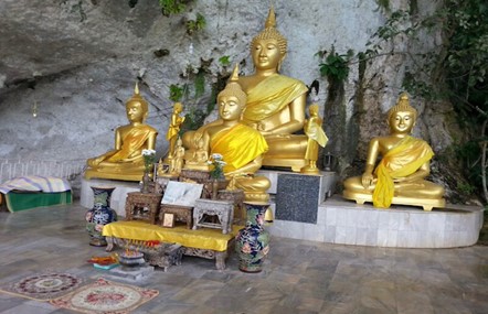 Wat Tham Suwan Kuha Tempel; dies ist eine riesige Höhle, welche eine gigantische ca. 12 Meter liegende Buddha Statue beherbergt, vor dem Eingang warten Makaken Affen auf Ihren Besuch- hier ist Vorsicht geboten, diese Affen warten darauf, die von Ihnen mitgebrachte Gegenstände zu stehlen, wenn Sie nicht Acht geben und Ihre Sachen gut festhalten!